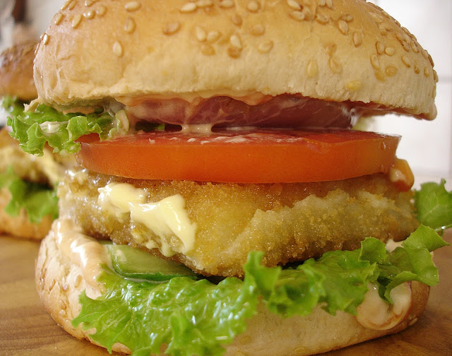 Απίθανα σπιτικά Burger με φιλέτο ψαριού και σος μαγιονέζα.